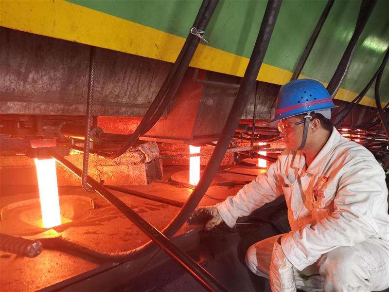 奔涌的鋼水、飛濺的鋼花、炙熱的紅坯……在連鑄生產(chǎn)車間的角角落落,無不體現(xiàn)著熱烈、奮進(jìn)的激情。春末夏初之際,連鑄生產(chǎn)一線溫度持續(xù)攀升,煉鋼人熱情高漲,他們與鋼水為伍、與高溫相伴,為實(shí)現(xiàn)“雙目標(biāo)”,堅(jiān)決打贏“三大翻身仗”全力以赴??矗瑵L滾的鋼水前,他們一次次測量著鋼水溫度;飛濺的鋼花中,他們相互協(xié)作更換中包套管;火熱的紅坯旁,他們守護(hù)著“火龍”前進(jìn);緊張的檢修中,他們一秒也不敢耽擱……測溫、排渣、澆鋼、換水口、切割紅坯……這些看似簡單的工作,其實(shí)需要頑強(qiáng)的毅力和過硬的操作技能才能完成。煉鋼、練人、煉魂,盡管工作艱苦,但是他們沒有一人喊苦叫累,對(duì)于每一項(xiàng)工作,他們都全力以赴,在煉鋼中冶煉非凡的鋼鐵人生。
