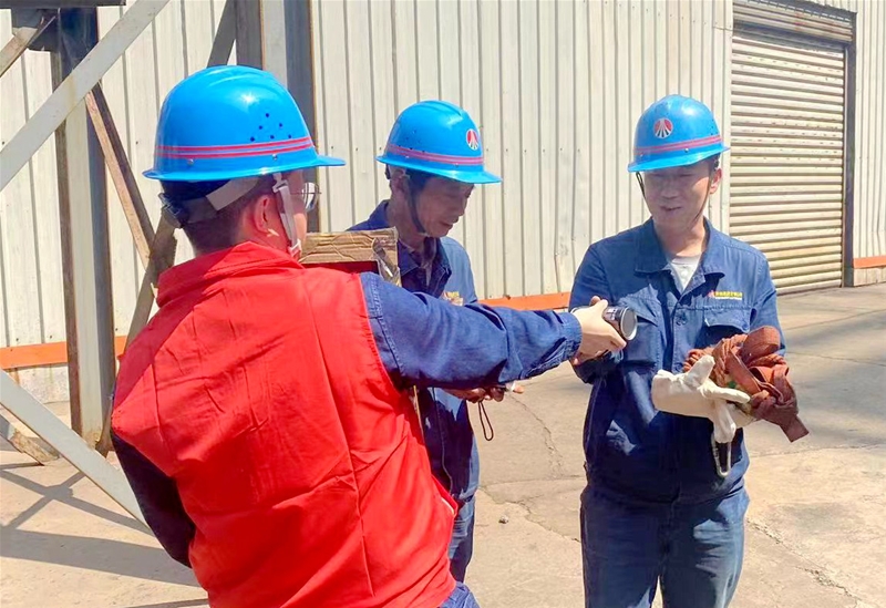 在檢修現(xiàn)場(chǎng),有這樣一支紅色愛(ài)心服務(wù)隊(duì),他們是由平均年齡35歲的青年志愿者組成。他們主動(dòng)請(qǐng)纓,為檢修現(xiàn)場(chǎng)參檢人員夏檢送清涼,一起戰(zhàn)高溫、斗酷暑。他們抱著防暑降溫飲品,登上20多米高爐平臺(tái)上,在送清涼的同時(shí),還時(shí)不時(shí)提醒參檢人員注意現(xiàn)場(chǎng)安全。“這么熱的天氣,大家干完活休息一下,我們這里為大家準(zhǔn)備了補(bǔ)充能量的飲品和飲用水。”青年志愿者王丹丹將一瓶瓶降溫飲品遞到參檢人員手里。“大家作業(yè)前把藿香正氣水喝上,以防中暑。”“上下臺(tái)階一定要注意腳下……”從這些溫馨的提示話(huà)語(yǔ)中,盡顯滿(mǎn)滿(mǎn)的關(guān)愛(ài)之情。