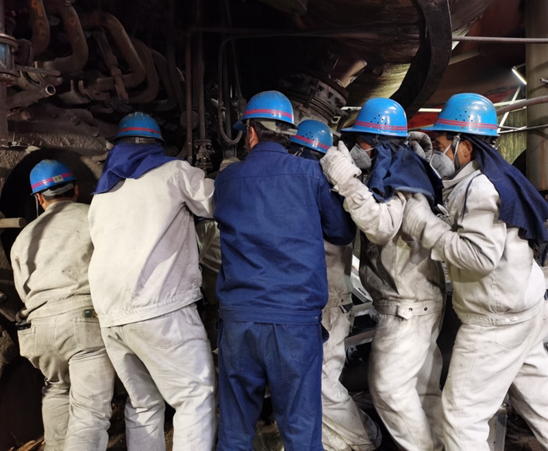 12日早晨9點(diǎn)鐘,高爐風(fēng)口平臺(tái)上,溫度滾燙,但這絲毫不能阻擋參檢爐前工們奮進(jìn)的步伐。他們身著白色阻燃服,在熱浪拂面的14#風(fēng)口旁?xún)蓛梢唤M,精誠(chéng)團(tuán)結(jié)、合力攻堅(jiān),一人雙手緊握鋼釬,一人使出全身力氣揮舞鐵錘,正全神貫注清理風(fēng)口套里面的殘?jiān)?hellip;…