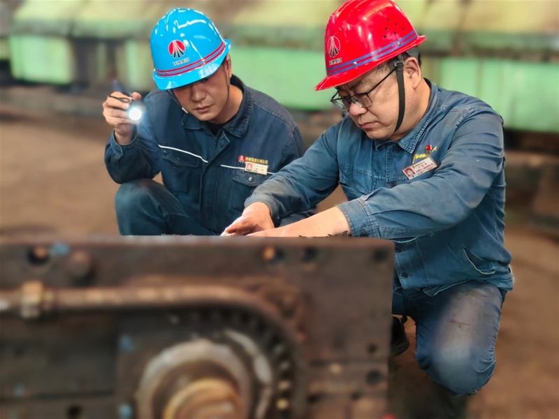 精軋機(jī)旁,鉗工責(zé)任技師丁軍平突然蹲下身,將耳朵貼在設(shè)備上:“聽,這聲音不對(duì),增速箱鬧毛病了。”徒弟常晨湊過去聽了半天,一臉茫然:“師傅,我咋聽不出來(lái)?”老丁笑著說(shuō):“這就跟聽人咳嗽判斷病情一樣,干久了自然就有感覺。”說(shuō)著,他掏出一個(gè)翻得卷邊的筆記本,里面記滿了各種設(shè)備異響的判斷方法。