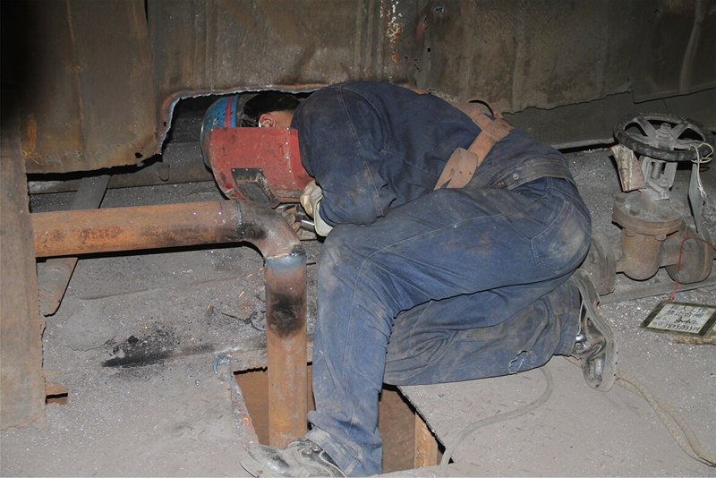 順著檢修路線,一路走到了二冷室,由于停機(jī)不到一個(gè)半小時(shí),管道里還未排凈的水依舊在往下流,但連六的弟兄們已然顧不上這些,個(gè)個(gè)都在爭著搶著忙著手中的工作。鏡頭里的他們,衣服早已經(jīng)全部濕透,伴著那二冷室窒息的高溫蒸汽,還有那焊接冒煙的刺鼻味道,我實(shí)在不知道每一次的檢修,哪來的力量去支撐他們一直堅(jiān)守在這里!在鏡頭下的他們既害羞又嚴(yán)肅,生怕留下了不好的瞬間,然而當(dāng)我采集完照片準(zhǔn)備走時(shí),他們又是那樣的可愛,爭著搶著想看看自己那英武的神情,當(dāng)我向他們說“辛苦了”的時(shí)候,留給我的依舊是那憨厚的笑容……