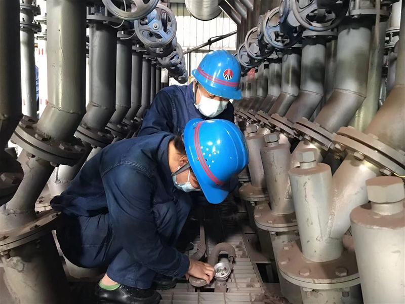 在檢修現場,她們的身影雖不受關注,卻留下了許多令人動容的畫面。她們穿梭于管道與設備之間,行走在高爐與轉爐周圍,登上加熱爐頂部,奔忙在高壓柜里,背著沉重的測量設備,與檢修人員一起奮戰(zhàn),或爬上20多米高的脫硫塔、煤氣放散塔,她們無懼寒冷與風沙;或鉆入軋鋼加熱爐下層,她們無懼黑暗與濕滑,或跨過火紅的鋼坯生產線,她們無懼高溫與強光;沒有退縮、沒有怨言,仔細排查、比對、調試,精心對公司各類測量設備進行在線校驗,確保了電能表、流量積算儀、數顯表等一件件在線測量設備,以嶄新的面貌,合格地安裝在生產現場。