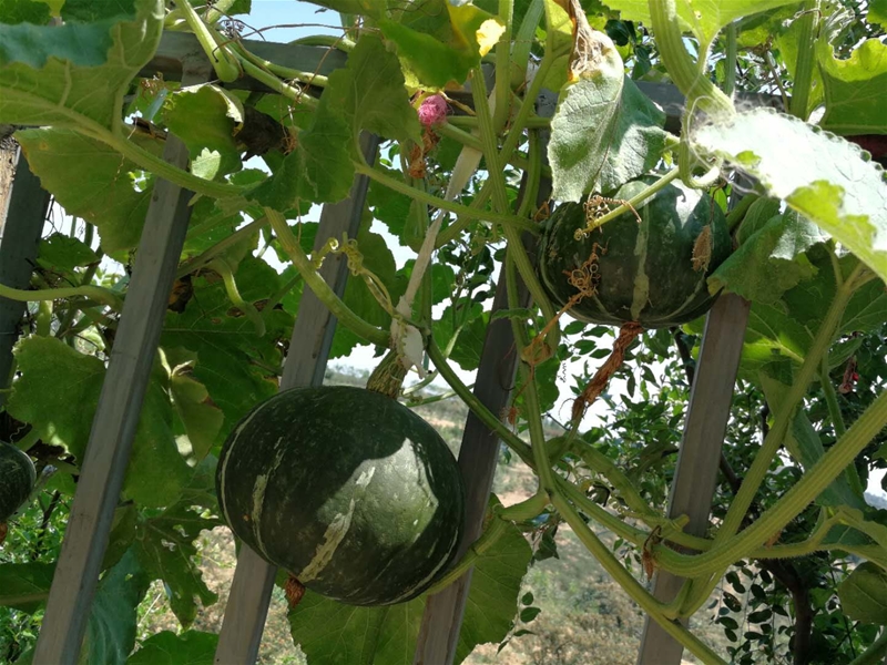 來到家里的后院,剛跨過后院門就看到爺爺種的各種花草,在遠(yuǎn)一些是這個季節(jié)的蔬菜。從記事起爺爺就愛種花草,今年也一樣,葫蘆藤上結(jié)滿了小葫蘆,隨風(fēng)擺動,就像是一群葫蘆娃在向我打招呼,情不自禁的摘下一個洗了洗讓孩子玩。記得小時候自己偷偷的摘了個葫蘆去和同伴們玩,回來讓爺爺一頓好罵。后院的大部分地方爺爺都種上了菜,大片的辣椒,幾個黃瓜騰,西紅柿,茄子和豆角……看著這些新鮮綠色的食材我覺得我胃口大開。