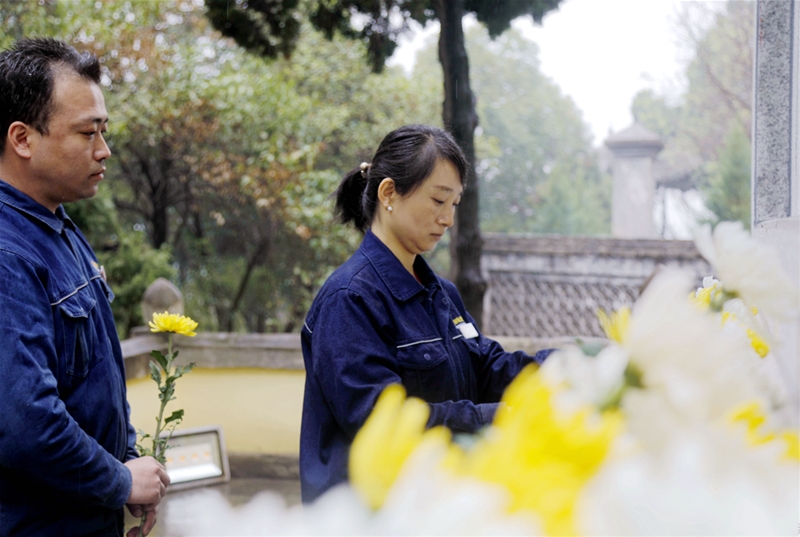 圖六:煉鐵廠機關黨支部書記薛芳到王平順墓前敬獻鮮花。