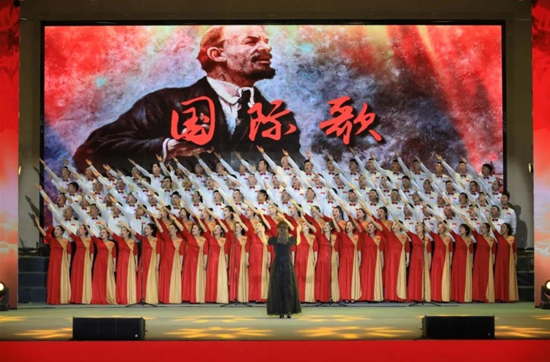 煉鐵廠合唱《國(guó)際歌》《沒(méi)有共產(chǎn)黨就沒(méi)有新中國(guó)》