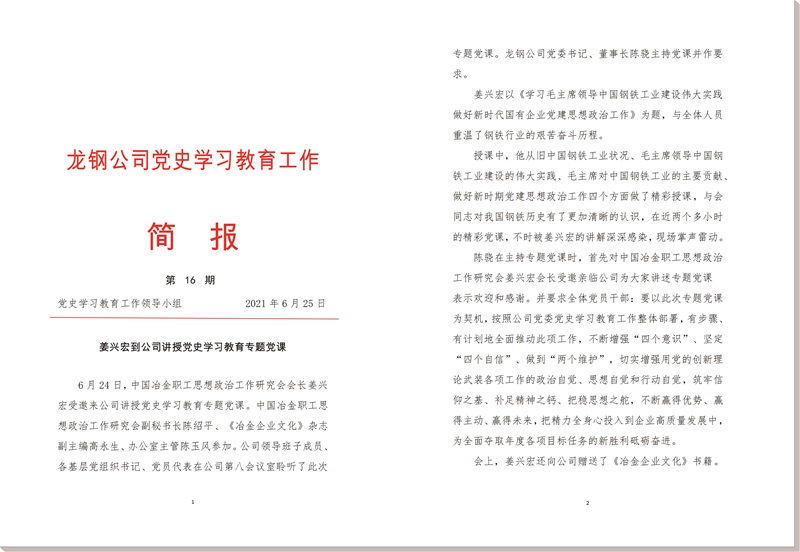 龍鋼公司《黨史學(xué)習(xí)教育工作簡(jiǎn)報(bào)》 第16期