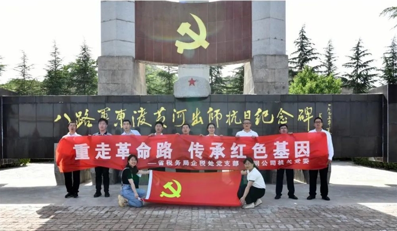 上好必修課 該單位黨委利用辦公樓LED屏、海報、電視、廣播、微信公眾號等載體廣泛宣傳,營造濃厚的學習氛圍。先后邀請韓城市委黨校張孝榮教授、公司副總會計師李艷芳作了黨史專題授課,開展了合唱入黨誓詞歌《我宣誓》、觀看《古田軍號》《第一大案》等重大黨史題材電影、“黨的知識”百日千題有獎競答等活動。并與陜西省稅務局企業(yè)所得稅處黨支部到八路軍東渡黃河出師抗日紀念碑攜手開展“支部聯建學黨史 稅收惠企辦實事”主題黨日活動,聆聽八路軍東渡黃河出師抗日的英雄事跡,緬懷革命先輩的豐功偉績,重溫入黨誓詞,教育引導黨員干部賡續(xù)紅色精神,踐行“干事”文化,齊心協力打造百年老店。